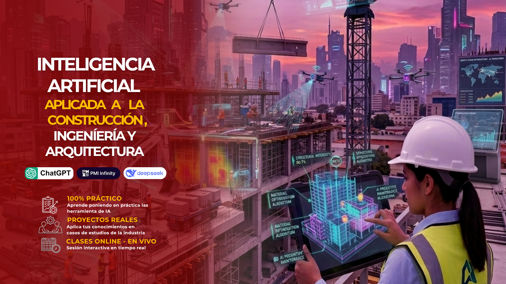 Este programa brinda a los participantes una visión práctica sobre el uso de la Inteligencia Artificial en los sectores de construcción, ingeniería y arquitectura. Se desarrollan conceptos fundamentales de IA, su aplicación en diseño, planificación, control de proyectos y gestión de datos. A través de herramientas como ChatGPT, Gemini, DeepSeek y PMI Infinity, se explorarán casos prácticos y aplicaciones reales que permitan mejorar la productividad, calidad y sostenibilidad en proyectos.